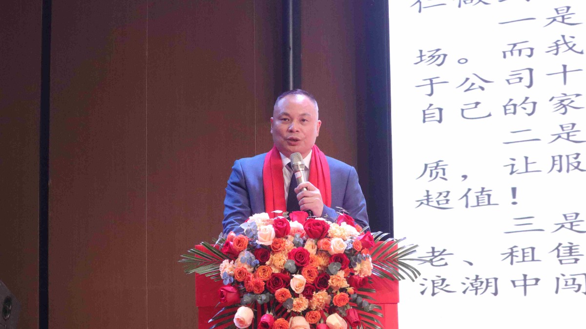 股东代表余军发先生高度评价公司十年发展,分析当前经济形势和行业困境,鼓励员工在挑战中寻找机遇,续写辉煌。