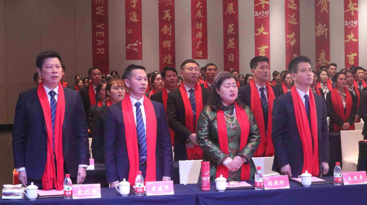 大会在温馨中开场,主持人楚祥和于瑶热情欢迎到场嘉宾。全体人员合唱《没有共产党就没有新中国》,表达对祖国的感恩,彰显公司在党的引领下发展的信念。《深源之歌》唱响,凝聚员工心声,将气氛推向高潮。