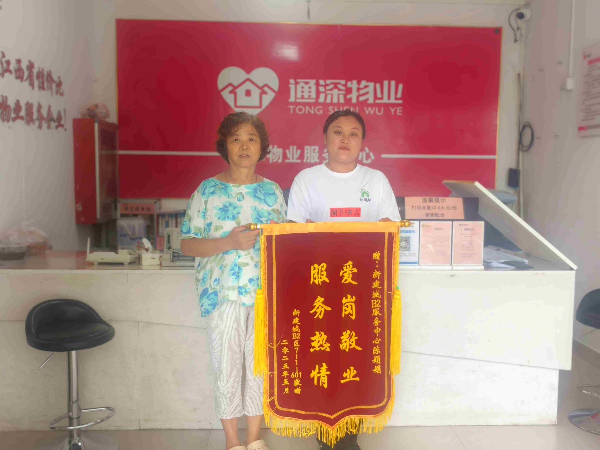 新建城B2楼管员陈娟娟帮助装修户业主开窗通风,接收快递,服务热情,业主赠送锦旗。