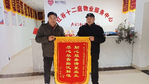红谷十二庭小区欧尚公馆616业主为两位90多岁高龄老人,子女常年不在南昌工作。物业工作人员熊燕、刘慕华、熊冬根日常主动关心、时常帮扶,用贴心服务守护老人生活。老人子女深受感动,特赠送锦旗一面,以表感谢与认可。