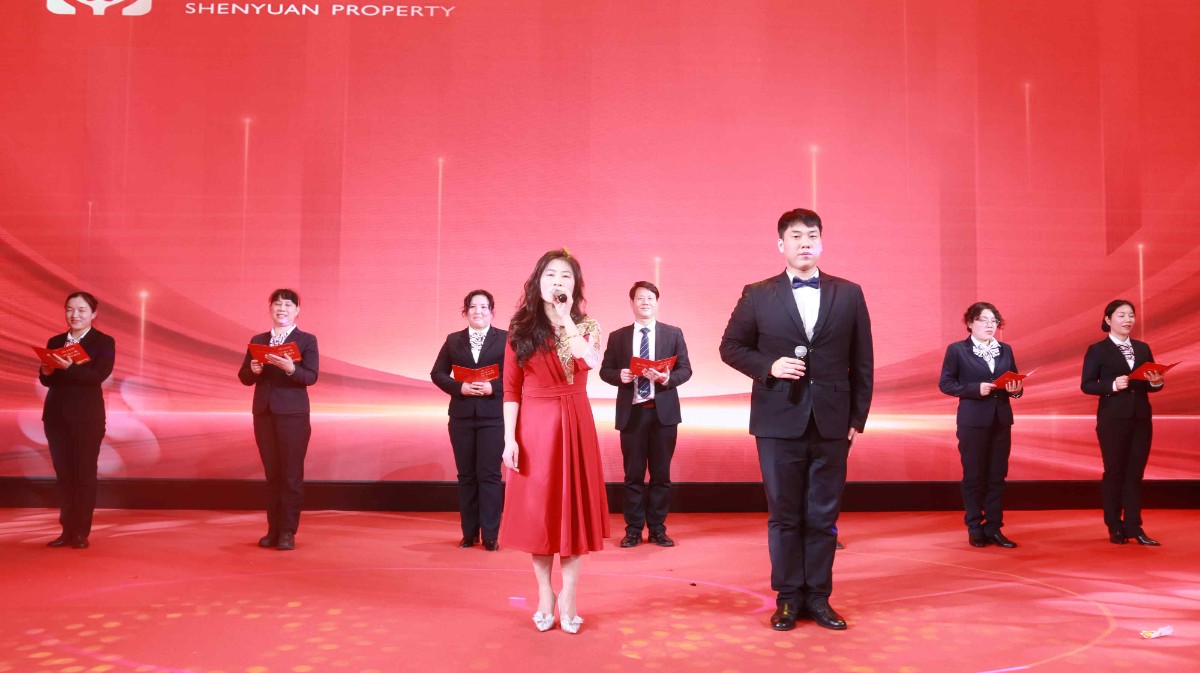 大会在温馨中开场,主持人楚祥和于瑶热情欢迎到场嘉宾。全体人员合唱《没有共产党就没有新中国》,表达对祖国的感恩,彰显公司在党的引领下发展的信念。《深源之歌》唱响,凝聚员工心声,将气氛推向高潮。