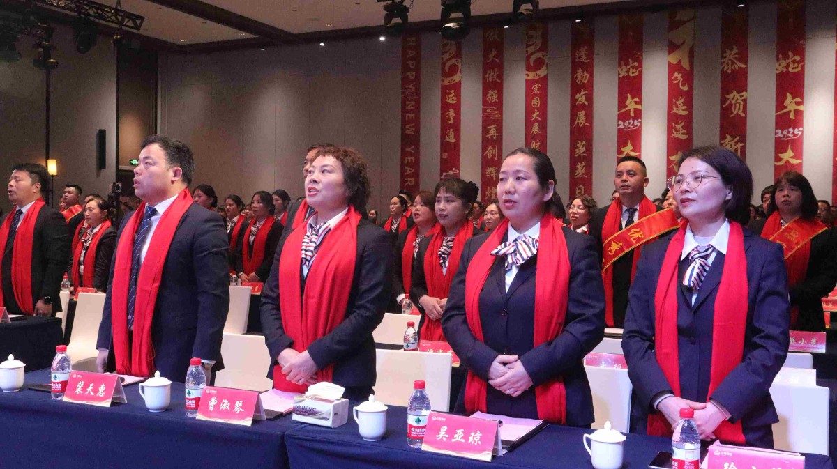 大会下半场开启了一场欢乐的庆祝盛宴。晚宴上,执行董事郑波先生发表了热情洋溢的祝酒词,向全体员工致以新年的祝福和感谢。随后,精彩的文艺表演轮番上演,为大家带来了一场视听盛宴。九江分公司的舞蹈串烧《2025 好运来》以欢快的节奏和精彩的舞姿,为晚宴拉开了序幕,瞬间点燃了现场气氛。望达分公司的音乐快板《物业情怀》用独特的形式展现了物业人的工作,赢得了阵阵掌声。新建城分公司的小品《门里门外》、南昌分公司的手语舞《不放弃》、鹰潭分公司的朗诵《我是一名物业人》、新建城分公司的古典舞蹈《青花瓷》、望达分公司的小品《城里人和村里人》以及新建区分公司的舞蹈《大家一起来》等节目,各具特色,充分展示了员工们的多才多艺和积极向上的精神风貌。