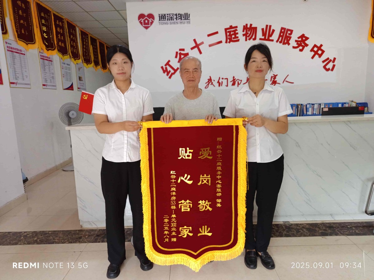 一面锦旗,不仅是荣誉与赞许,更是责任与肯定,也将成为物业团队持续提升服务、践行初心的动力方向。