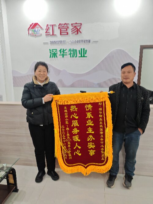 近日,东城国际小区1栋2单元601业主李小平向物业赠旗,致谢其及时解决小区车辆乱停放安全隐患。
